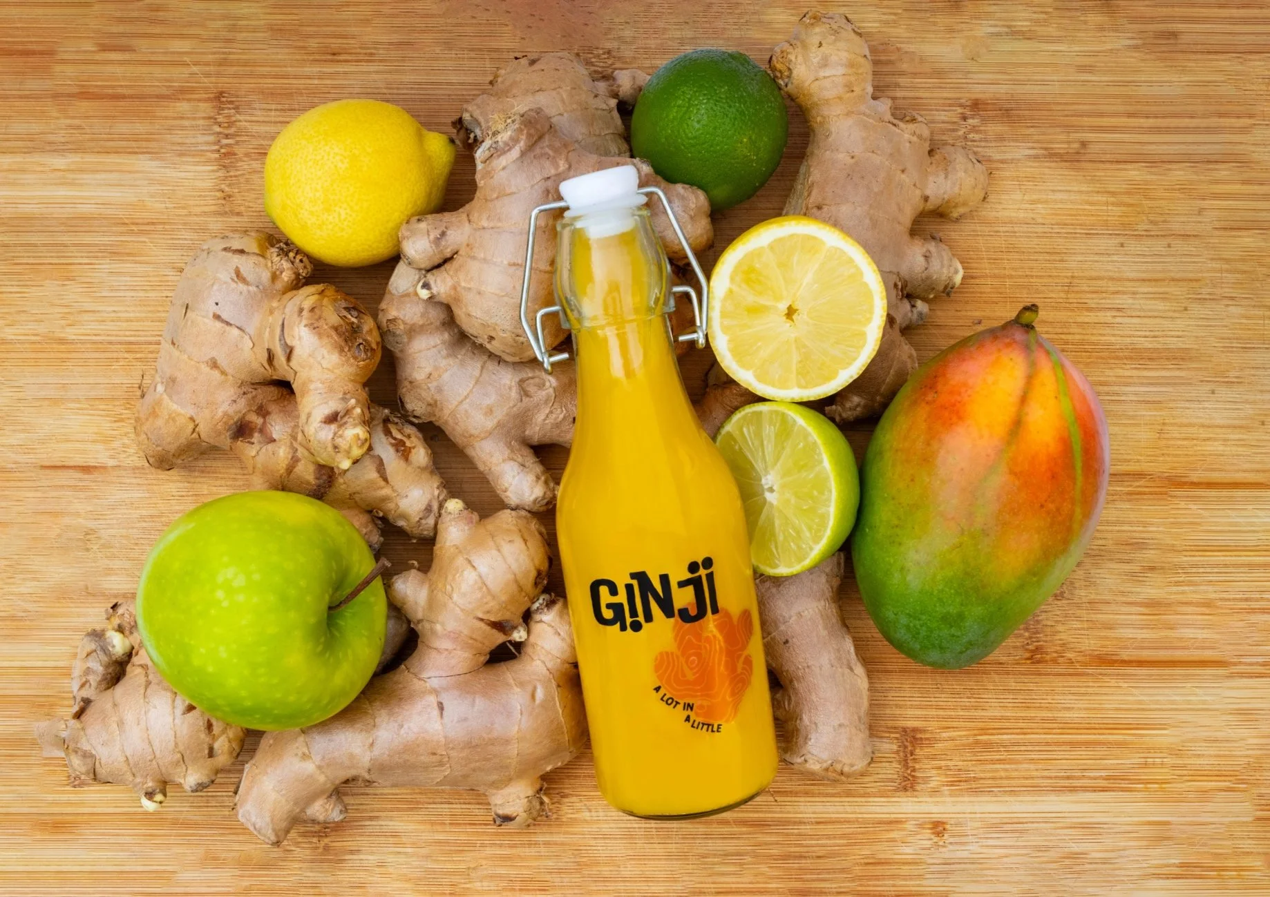 We blend ginger, mango, apple, lemon, lime, turmeric, black pepper and cayenne pepper into one bold little bottle. A precise mix of carefully balanced heat, citrus, and natural sweetness.